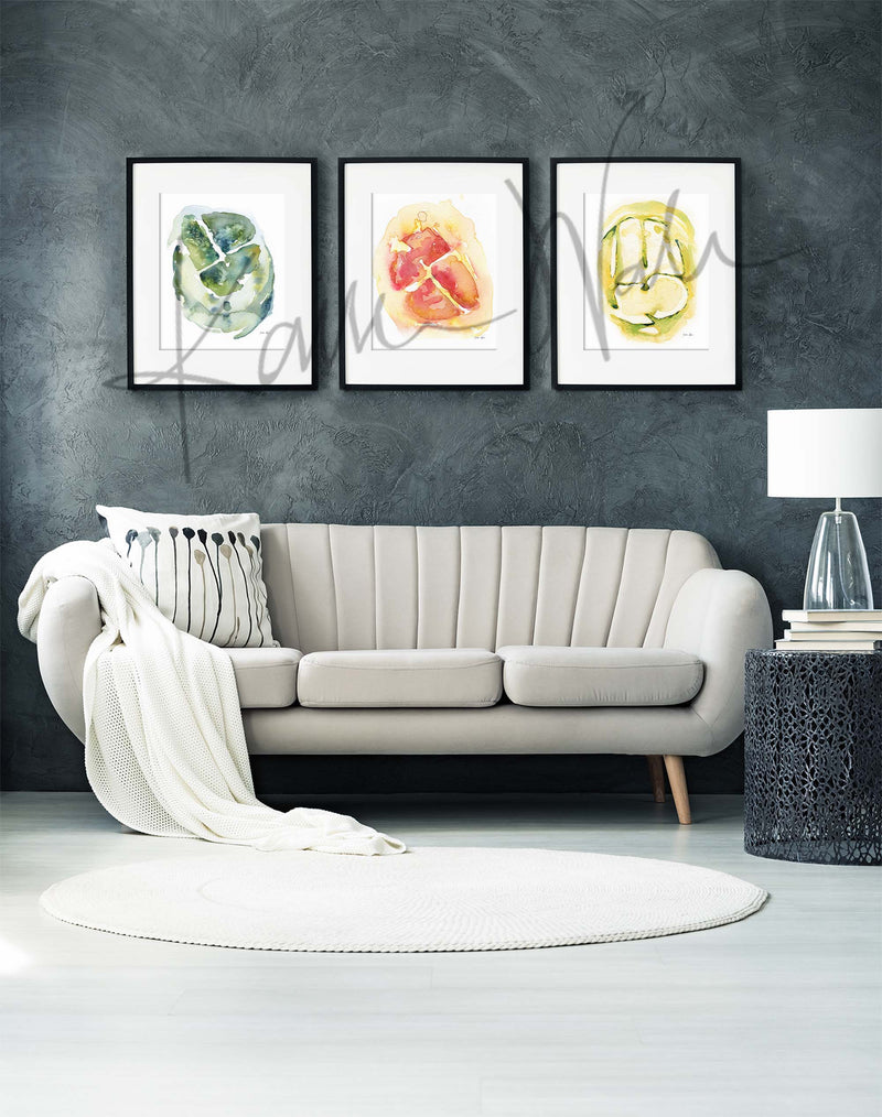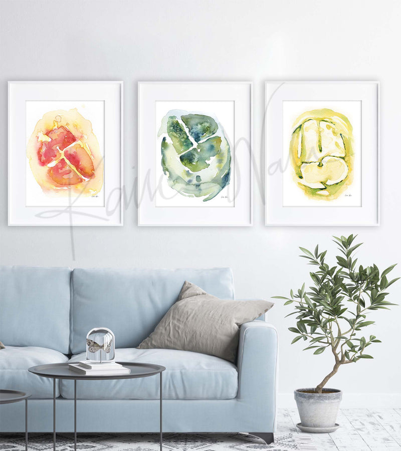 4 Chamber Heart in Bright Colors Watercolor Print Set of Three