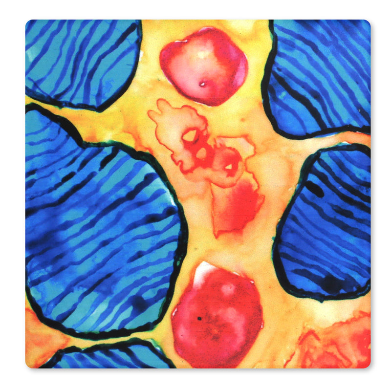 This ceramic coaster set was made from my Abstract Mitochondria watercolor print that shows the the mitochondria, the cellular organelle in charge of converting food into energy for the body.