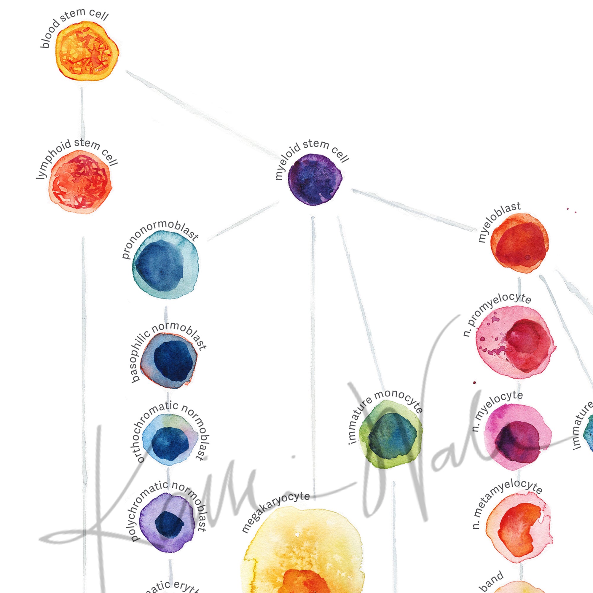 Blood Cell Lineage Watercolor Poster
