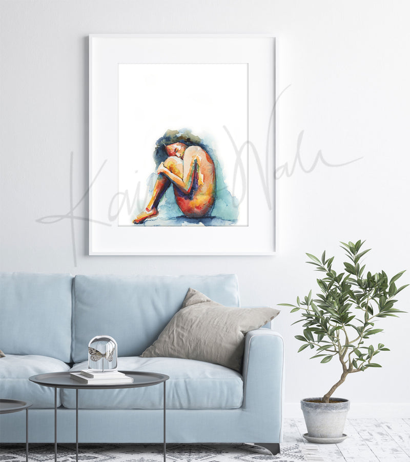 This stunning watercolor print depicts the body in teals, yellows, and oranges and is part of my Eye, Mind, Body Connection Set. This painting depicts the body as a key element in physical recovery and optimization, connecting eye, mind, and body together. This piece screams mindfulness and tranquility!
