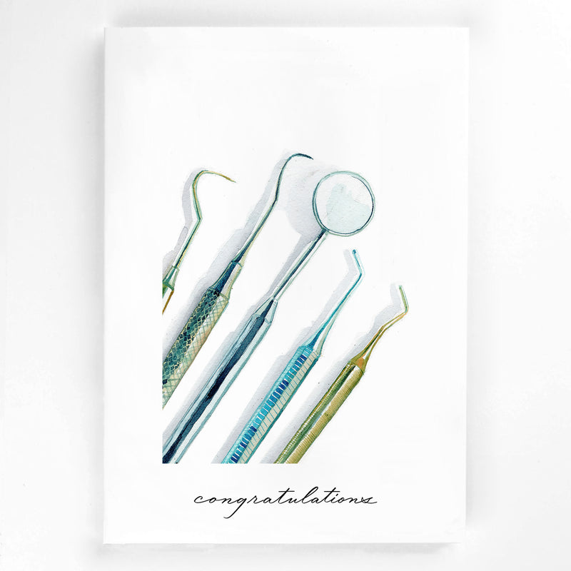 Say congratulations with this dental instruments card! Cards are packaged with envelopes. Perfect for doctor gifts, graduations, or other events and occasions!