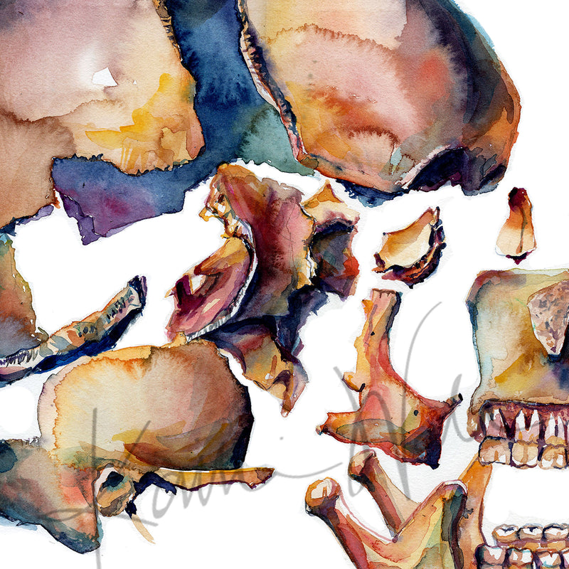 Exploded View of Skull II Watercolor Print