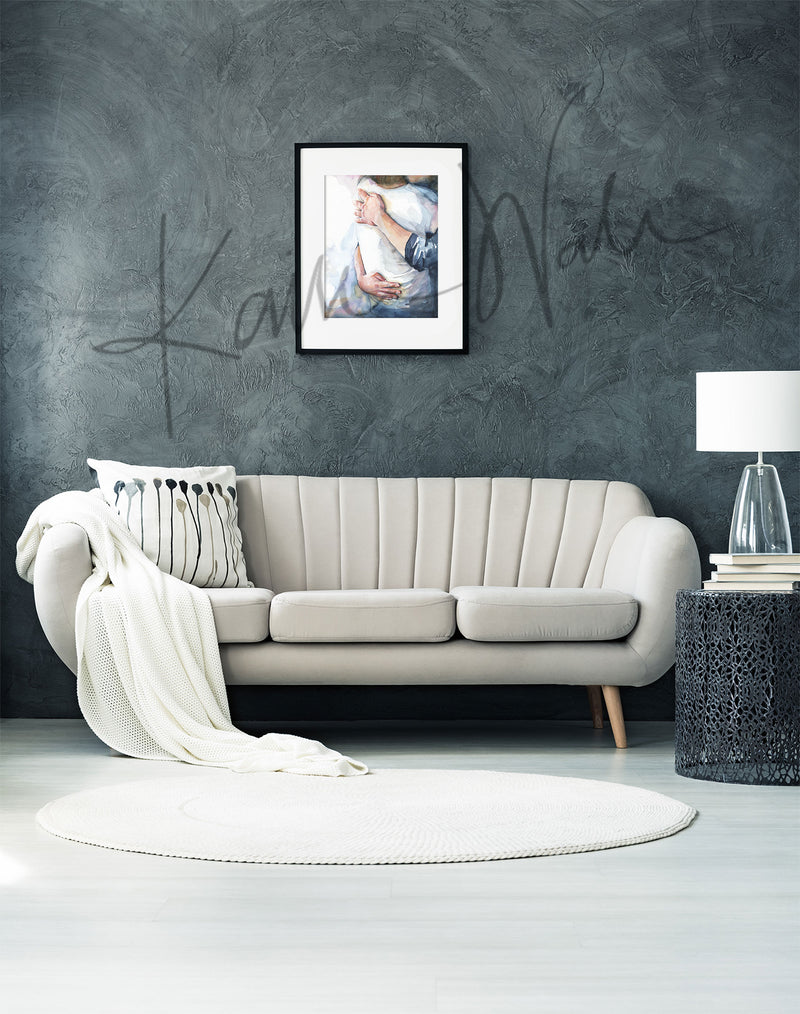When I was scrolling through Kaitlin’s art work, I came upon this picture. It was a full big hug and it was as if I could actually feel it. I then read her description for the picture and it touched me even more, since I had not long ago completed my own cancer treatment. I knew at that point that this picture belonged in my home. I wanted to experience the “hug feeling”, even if I actually wasn’t having one in person. It so touched my heart.