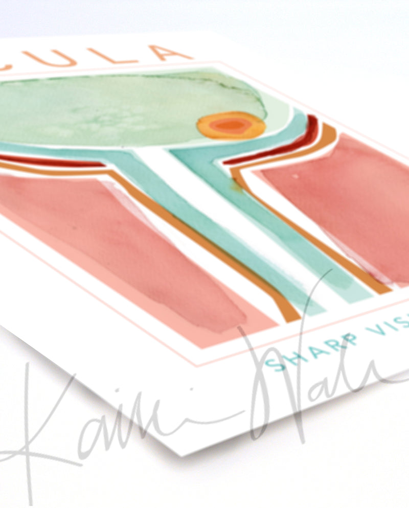 This contemporary poster shows the Macula, the Sharp Vision Architect. This modern design shows the Macula in all its wonder, as it sends detailed visual information to the brain. The watercolor overlay adds depth and texture while the bold, bright colors will be a welcome addition to any optometrists, opthamologists, or opticians office!