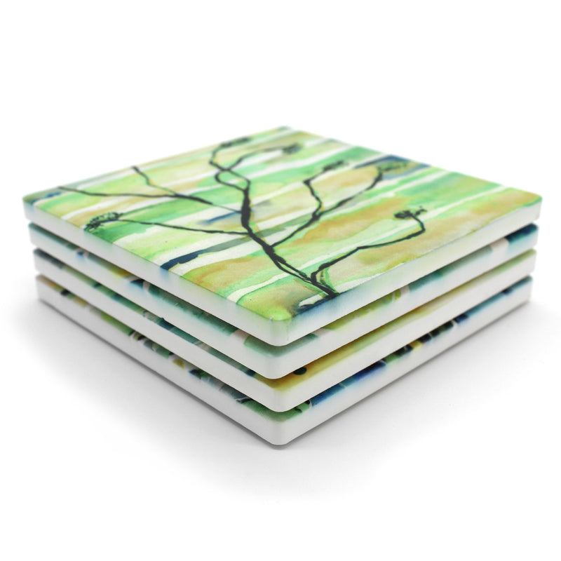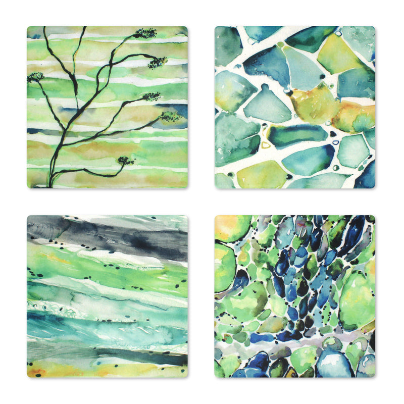 This ceramic coaster set was made from multiple of my muscley watercolor prints. The coasters included in this set show:
