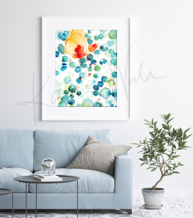 This listing is for a print of an original watercolor that I created. It is an abstract representation of plasma cells, white blood cells that secrete a large amount of antibodies.