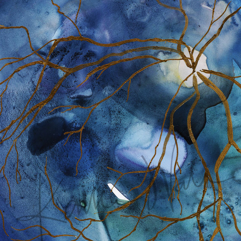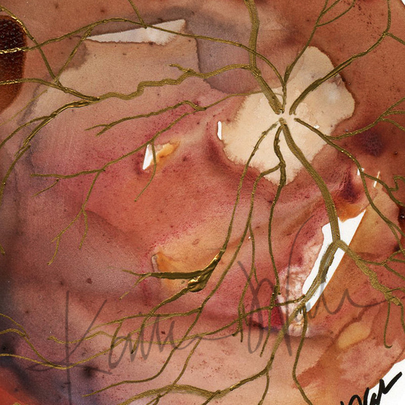 Because this is a print of the original piece, the gold will be visible, but it will not be metallic or have the luster of gold paint.