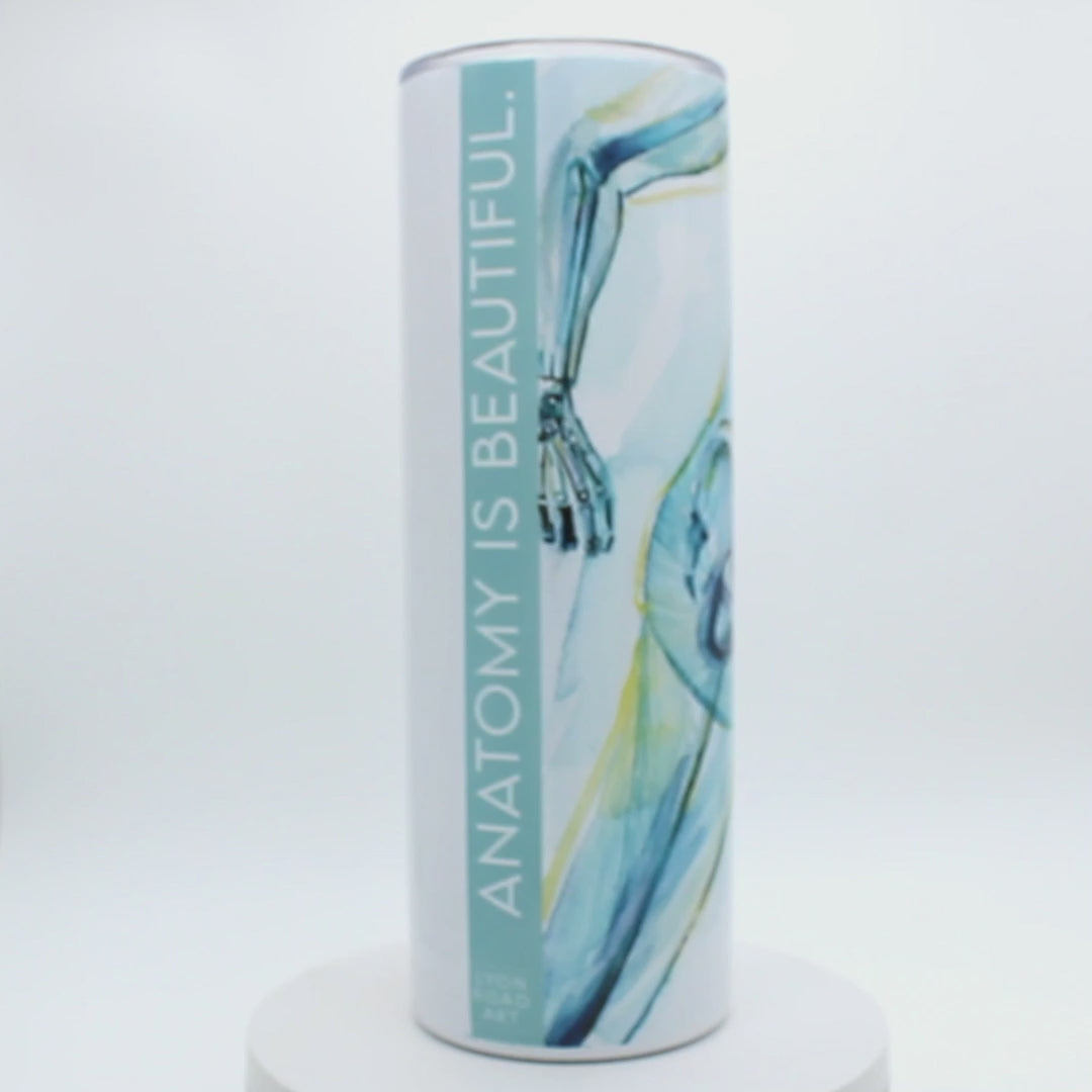 This skinny tumbler was made from my Runner's Anatomy watercolor painting and is perfect for any runner, general athlete, or anatomy nerd! It shows the skeletal structure and faint musculature of the body in a runners pose.